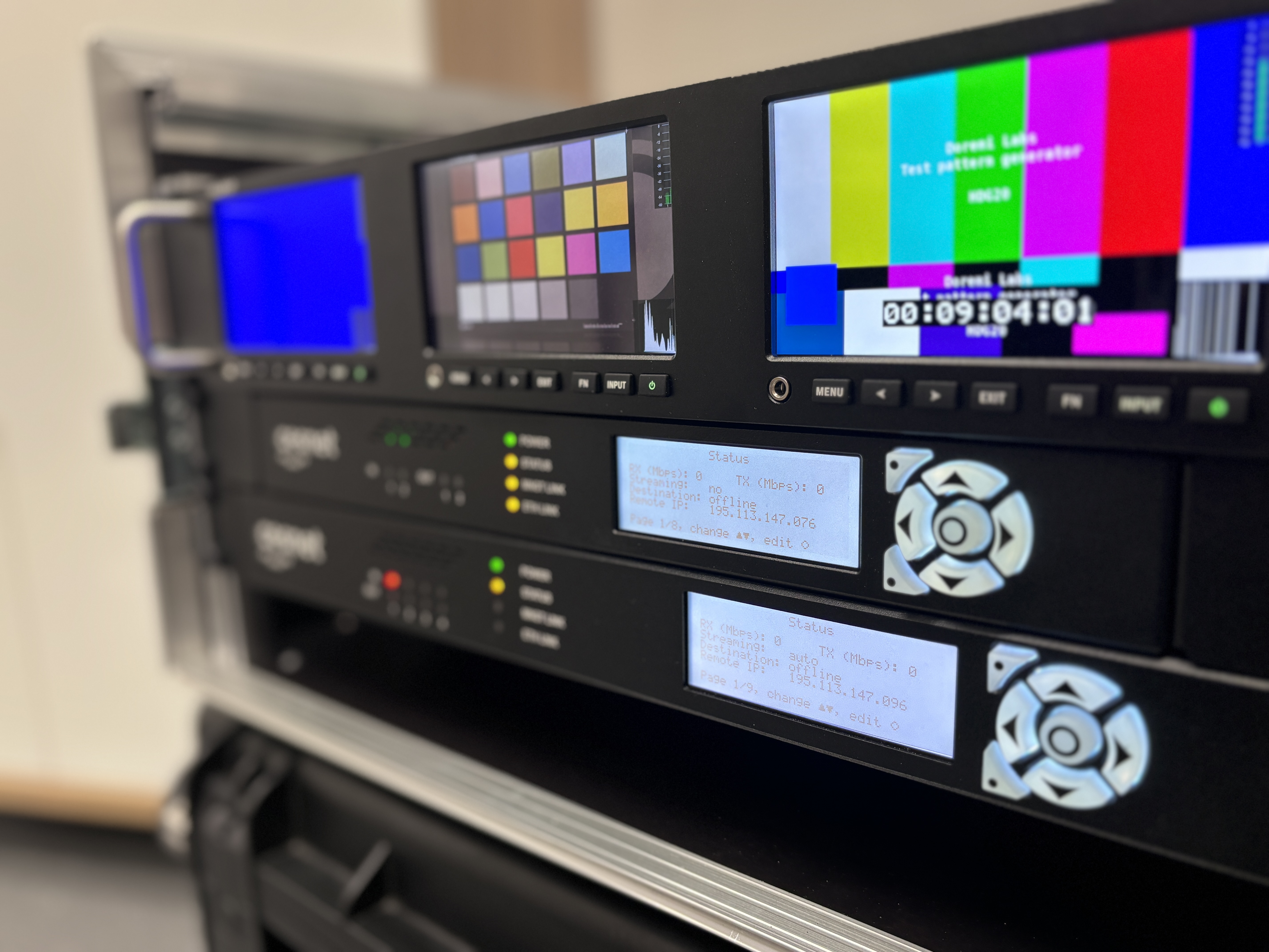 We have developed a unique FPGA (Field Programmable Gate Array) based technology that enables networked video and audio transmissions superior to HDTV with an added latency of less than 3 milliseconds. The device is a real-time system with all video and audio processing done in the FPGA.