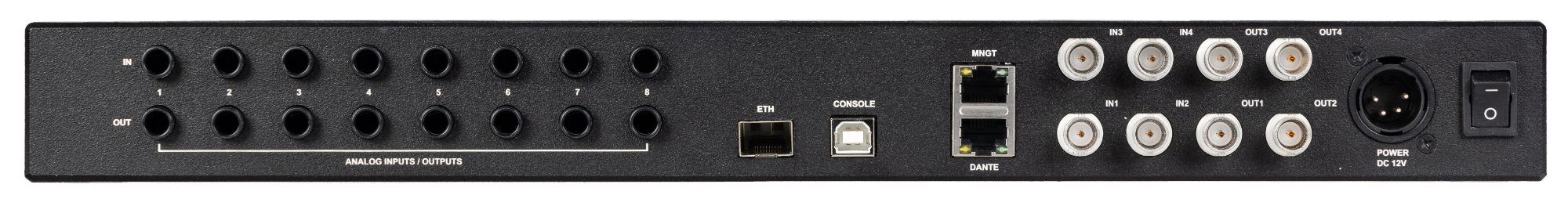 The latency of the device is so small that real-time delay-critical applications over long distances can be realized even after adding network latency. For example, musicians can play together in real time between cities and countries. Video quality exceeds current HDTV broadcast standards and enables live TV production with multiple cameras and in multiple locations.